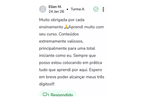 Se você tiver dúvidas basta perguntar abaixo de cada aula, existe um espaço para comentários. Além disso, também temos suporte por WhatsApp. Independente do canal, eu e minha equipe vamos te responder!